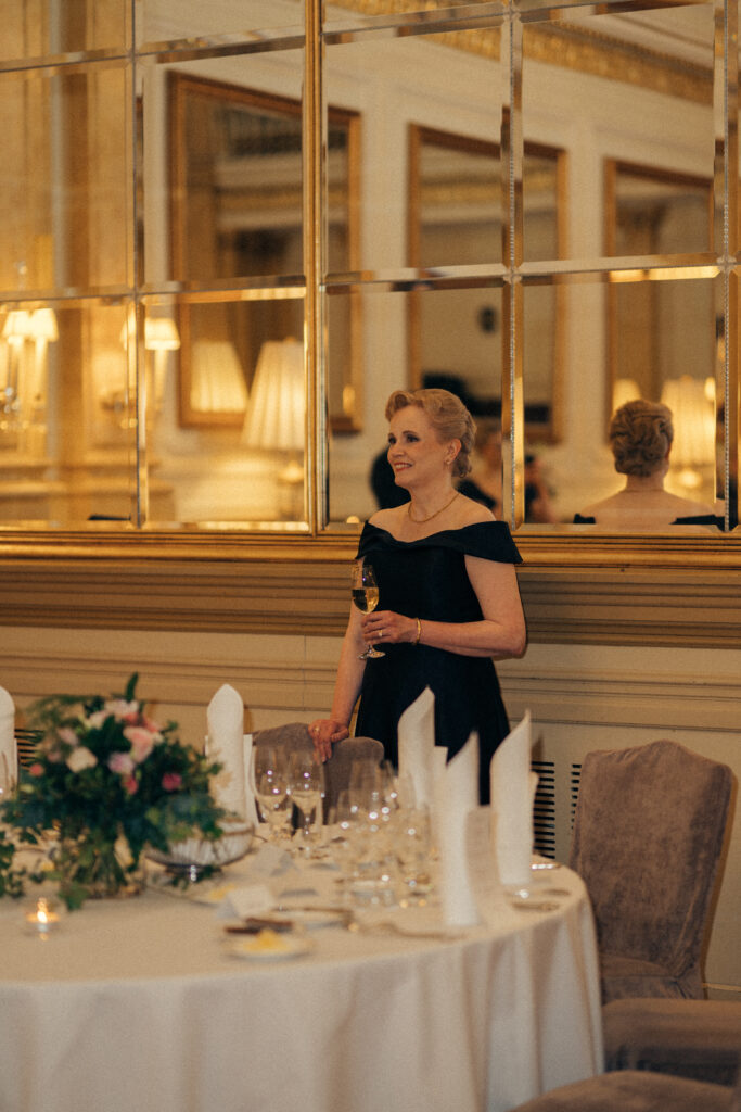 Karonkkaa juhlittiin Hotel Kämpin Peilisalissa perinteiseen tapaan illallisin ja lukuisin koskettavin puhein. Juhlan avasi Jean Sibeliuksen Andante Festivo viulisti Anna-Maria Huohvanaisen taitavasti tulkitsemana. Illan aikana saimme kuulla vielä useita kauniita viuluesityksiä: Järnefeltin Berceuse, Bachin a-molli Grave sekä Sibeliuksen Religioso, Impromptu ja Auf der Heiden.
